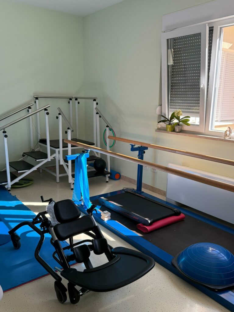 Zahvaljujući velikodušnoj podršci Udruge Mirna Luka iz Zagreba, naš kabinet fizioterapeuta postao je bogatiji za izuzetno vrijednu opremu – vertikalizator. Ovaj uređaj omogućuje našim korisnicima sigurnu i postepenu prilagodbu uspravnom položaju, što je od velikog značaja za njihovu rehabilitaciju i svakodnevni život.